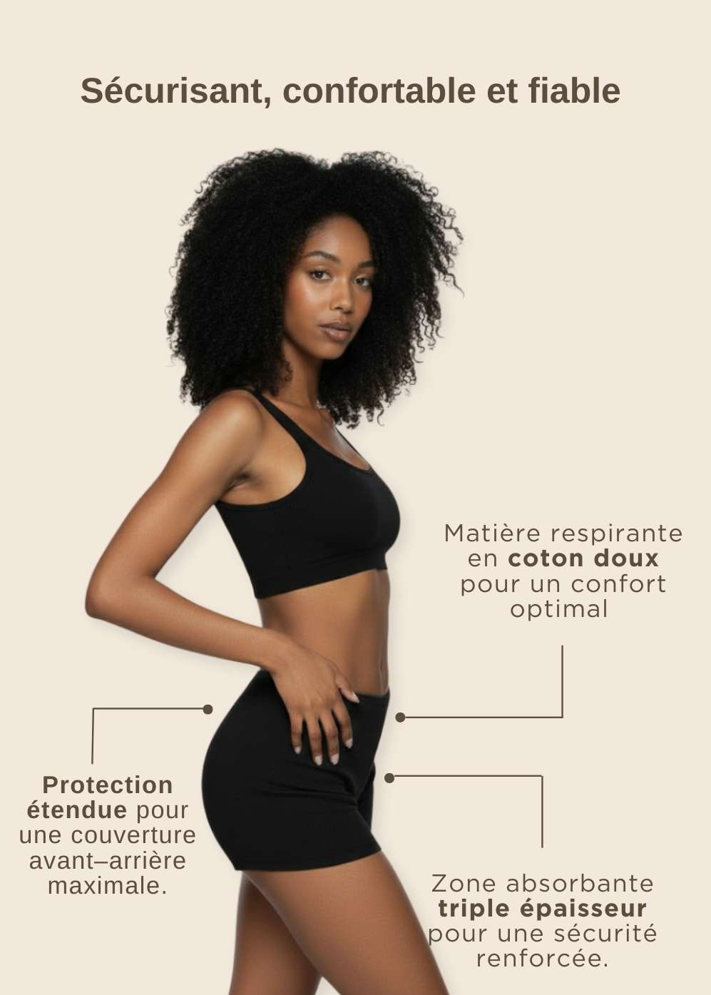 - si vous avez un flux léger, vous pouvez choisir une culotte menstruelle à faible absorption ; telle qu’une version “Jour” ou une culotte de la gamme “Daily” (nude et sans coutures).